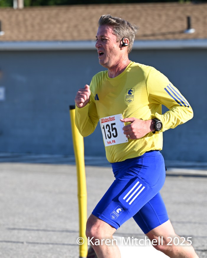 Hal Darr of York #1000 is on the home stretch of completing his one thousandth race lifetime. As usual Hal is running with women LOL. Kathy Mensinger #111 of Hanover is the only one of the three that I can ID.
