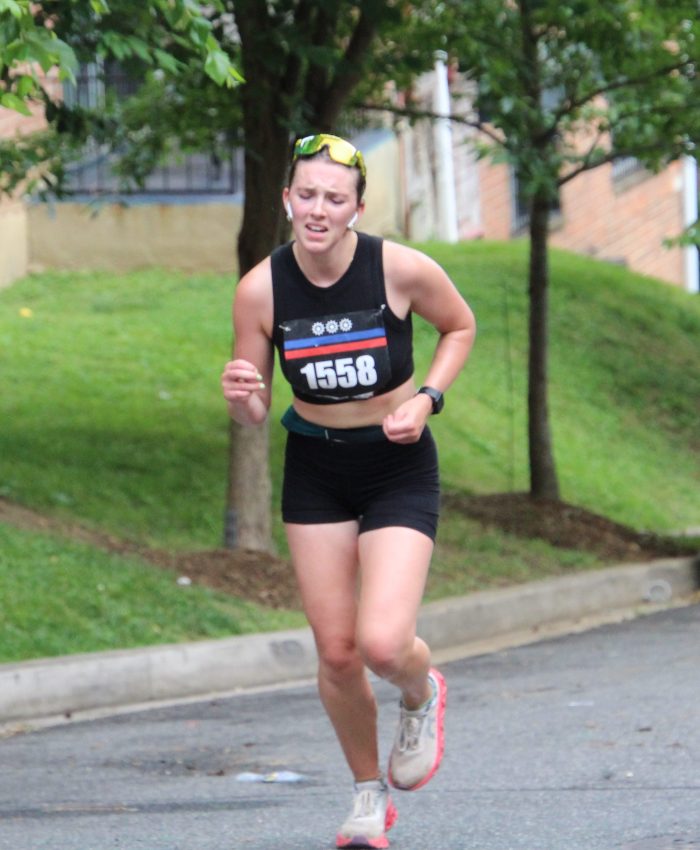 “Two weeks ago, I ran around the original DC border to set the new Fastest Known Time (FKT), which was about 55 miles. Then a week later, I ran the Baltimore 10-Miler, which was a hilly course. So, I knew before this race that my legs hadn’t fully recovered and the course would be difficult. I decided to just see what the front pack would do, and I’d adjust along the way. I knew I wanted to push myself as hard as I could, try not to let things fall apart, and hopefully land a podium finish,” stated Ladson.