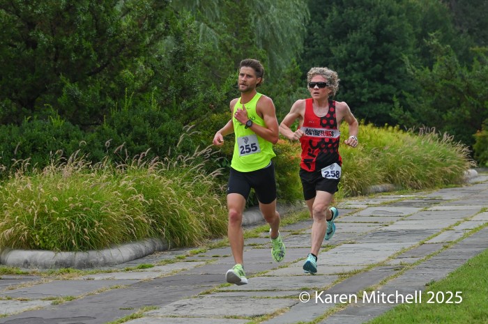 8.16.25 Baltimore, MD—Kristin Somerville of Pikesville, MD and Zach Kaminski of Baltimore were the overall champions at the Dreaded Druid Hills 10k. Somerville ran 45:31. Kaminski won in 34:25, on the course known for hills and summertime humidity. Falls Road Running organizes the event in Baltimore’s Druid Hill Park. The 2025 running had 234 finishers.