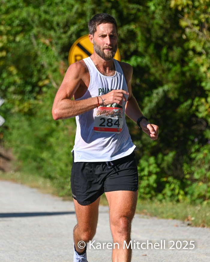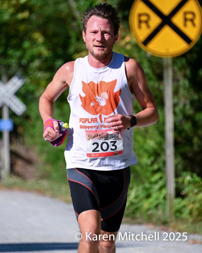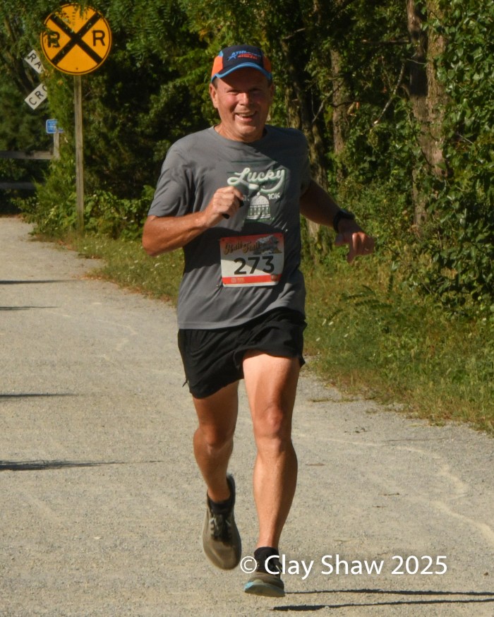 Race winner Alexander Loper of Abingdon, MD was running fast and nearly caught me at Brillhart Station. Loper, who won in 2023, had a huge winning margin, winning in 54:53. Matt Wehrle of Halifax, PA was second in 58:21. Luke Swomley of York was third in 58:41. Eric Wolfgang of York was fourth and top master in 59:52. Jeff DeFrank of Mechanicsburg, also a master, was fifth in 1:00:16.