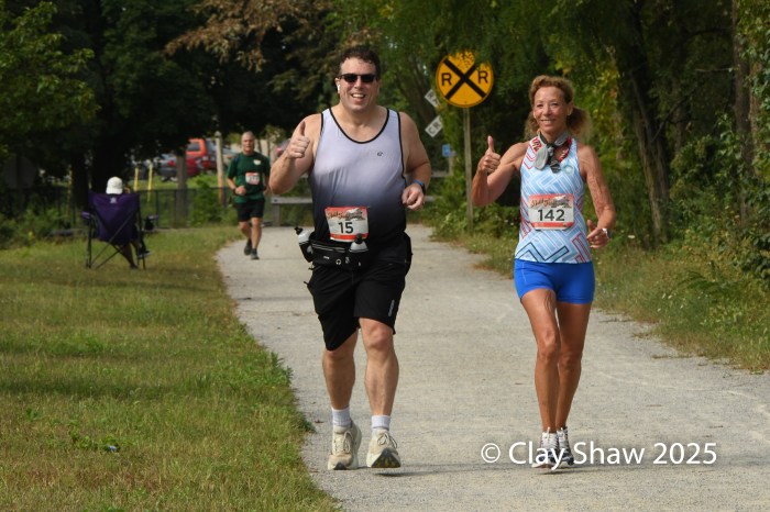 Billie Kay Melanson of York was the top seventy-year-old in 1:23:42; she was so fast that she beat all the 70-year-old men by 11 minutes. With more runners, she was 17th this year with 1:23:42. She ran nearly the same time in 2024 and was tenth. The race grew by 44 finishers in 2025, from 215 to 259.