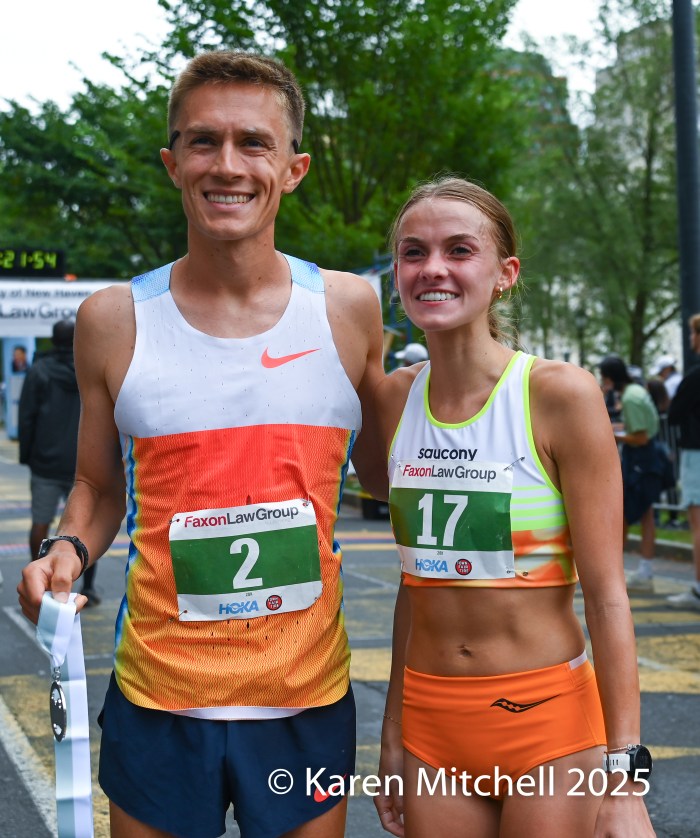 9.1.25 New Haven, CT—Conner Mantz of Provo, Utah set a new American 20k record of 56:16 while winning the Faxon Law New Haven Road Race (20k). Mantz also won in 2022.