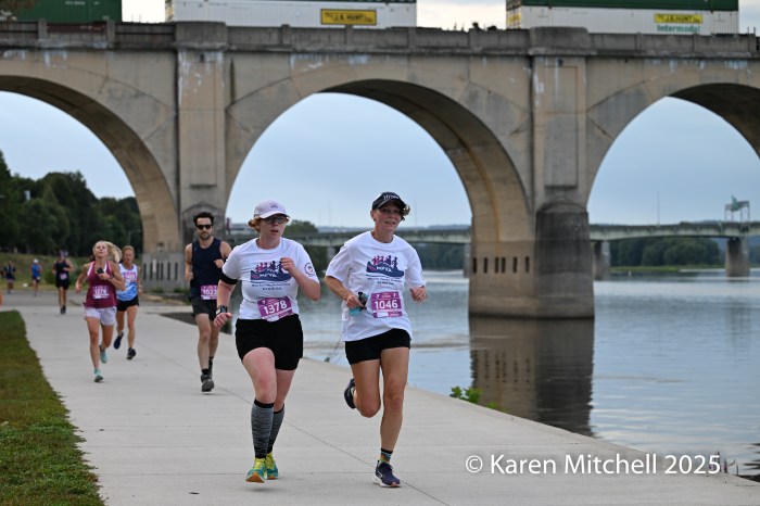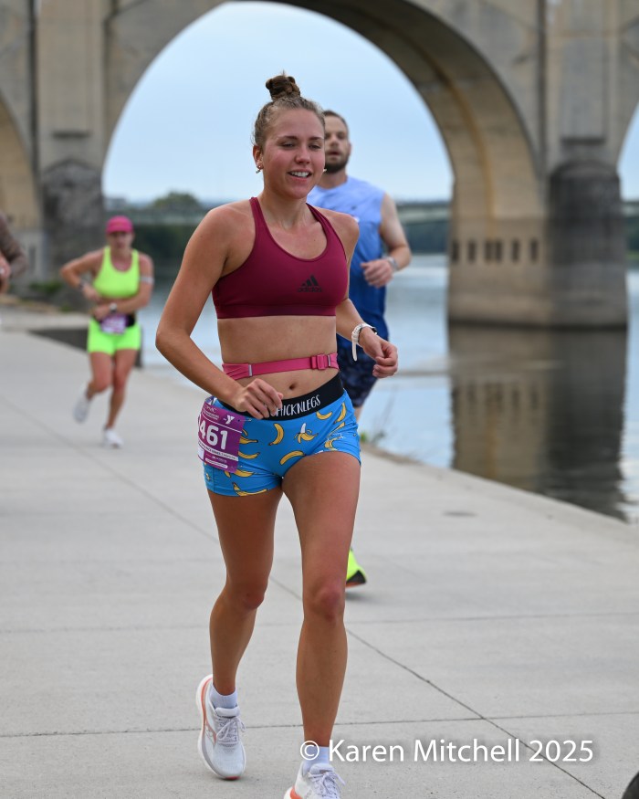 9.7.25 Harrisburg, PA—Annika Miller of Annandale, VA, and Ivan Zavala of Avondale, PA were clear winners in the Harrisburg Half Marathon. Zavala won in 1:13:32, Miller won in 1:24:48. The half marathon drew 462 finishers, and a companion 10k drew 196 finishers. As to concentrate on photography on the half marathon, we stationed our photos south of the Market Street Bridge, and did not see the 10k at all (sorry).
