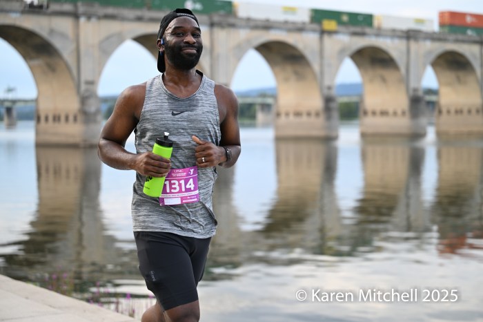 Nolan Meeks of Harrisburg runs 1:36:52 along the Harrisburg waterfront.