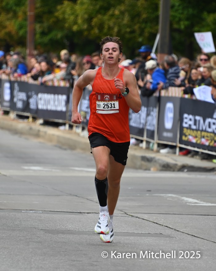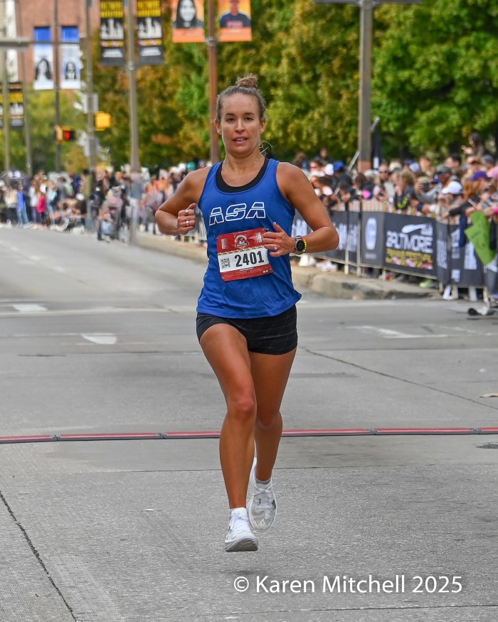 While over 14,000 completed one of the races of the Baltimore Marathon Running Festival, 2098 finished the marathon. Hannah Betman passed all but 32 runners that started with the marathon.