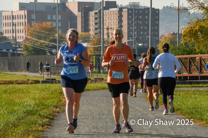 Rockin’ the Northern Extension (as we call it in York), runners cross under Interstate 83 and run on a narrow pedestrian crossing along US 30 far in the background.