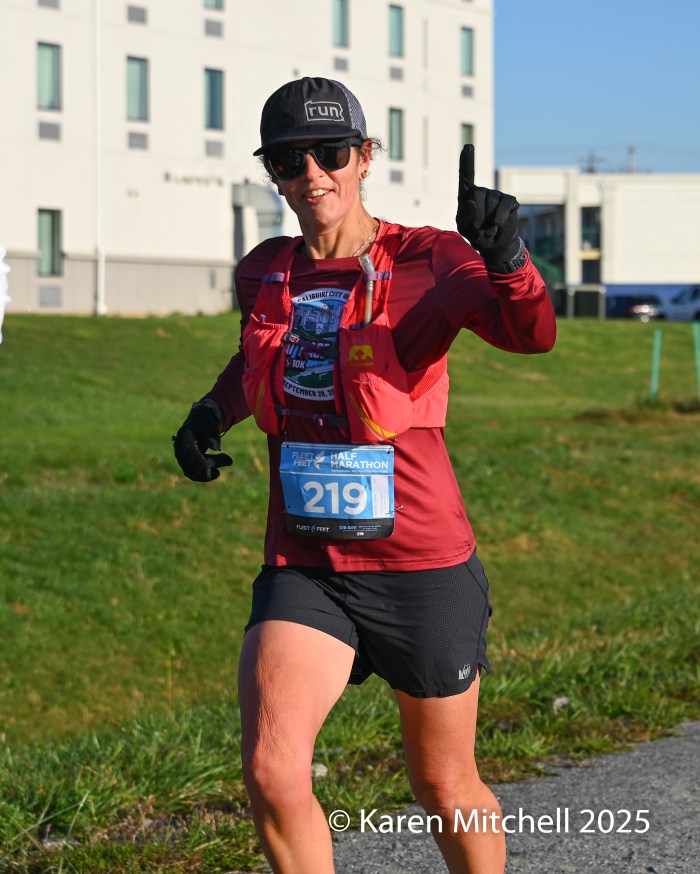 Tasha Martin of McSherrystown says hello on her way to being first master and 17th in 1:44:15.