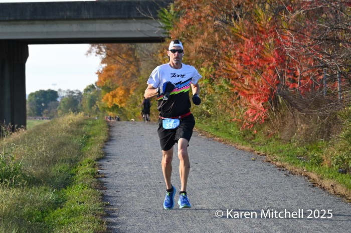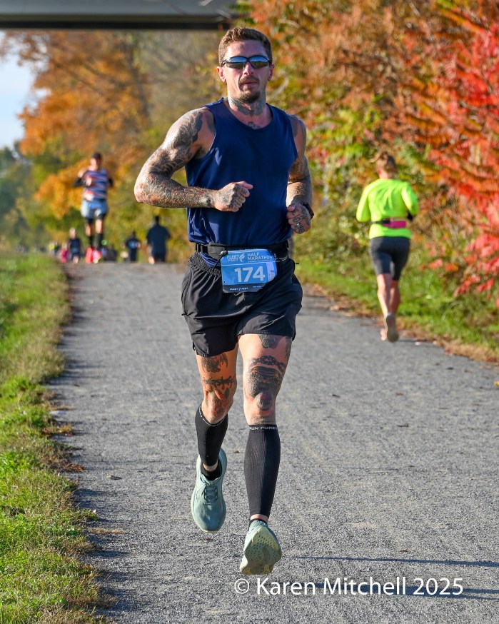 The Fleet Feet Half Marathon drew 345 finishers and ideal running weather among the Autumn colors. The event started and finished on the exact archway of the northern end of the York Heritage Rail Trail, about 27.5 miles from the Maryland border.