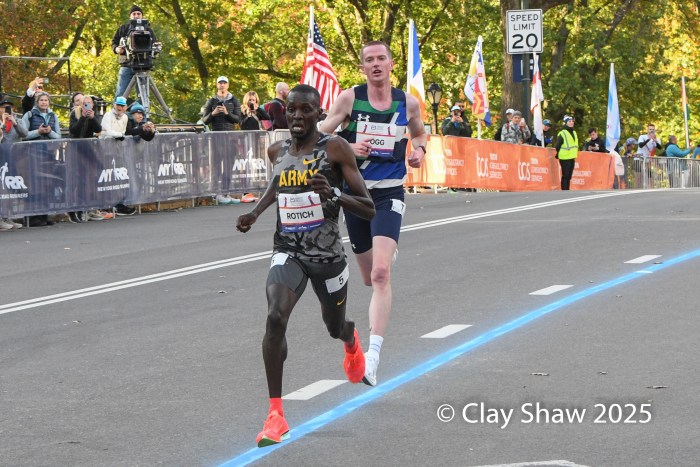 Amon Kemboi of Kenya had the best kick to the finish line, winning in 13:50. Cole Sprout of Eugene, OR was second in 13:51. Anthony Rotich of the US Army team in Colorado Springs, CO was third in 13:52. Adam Fogg of Great Britain and UA Baltimore was fourth in 13:53.