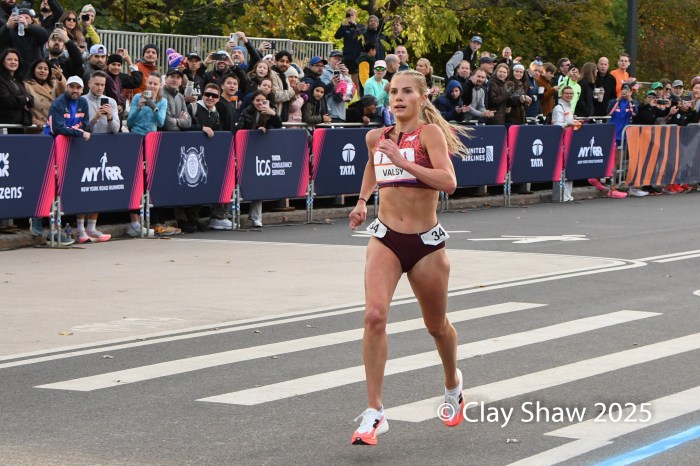 11.1.25 New York, NY—Annie Rodenfels of Boston, MA knows this course and used that knowledge and her kick to win her third Abbott Dash to the Finish Line 5k in 15:33.