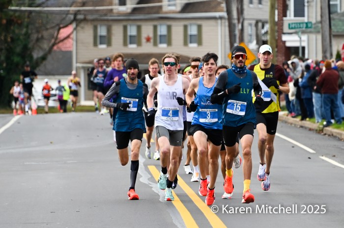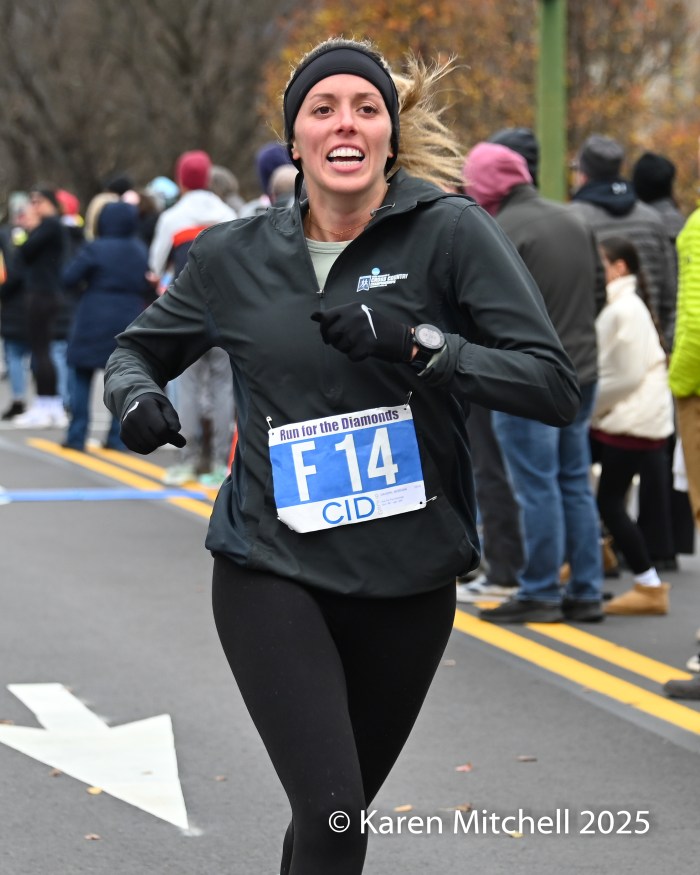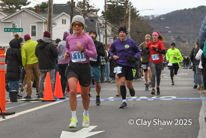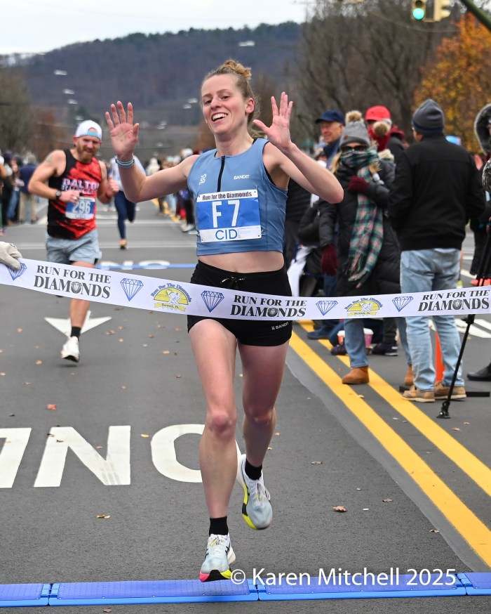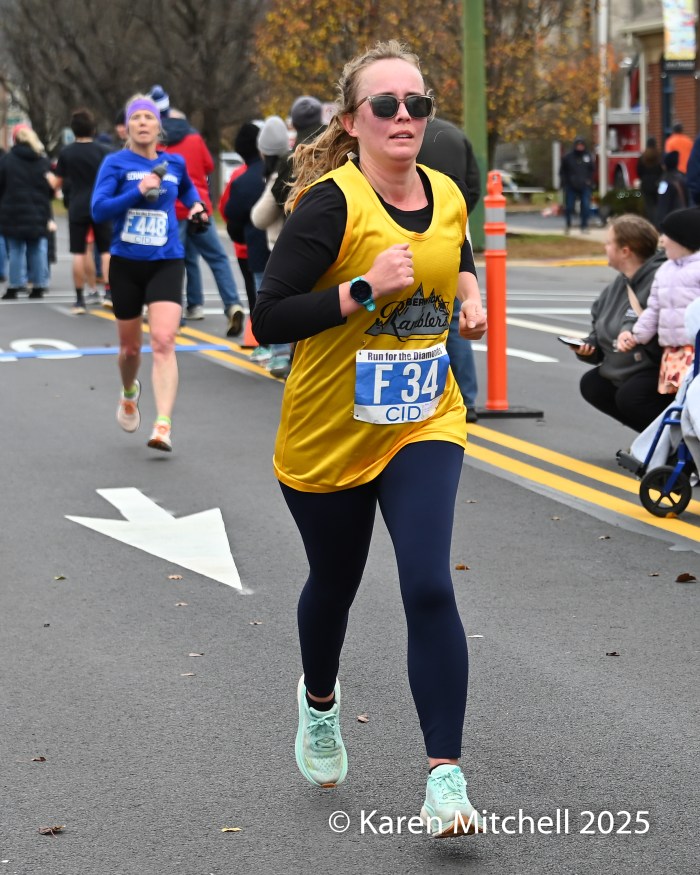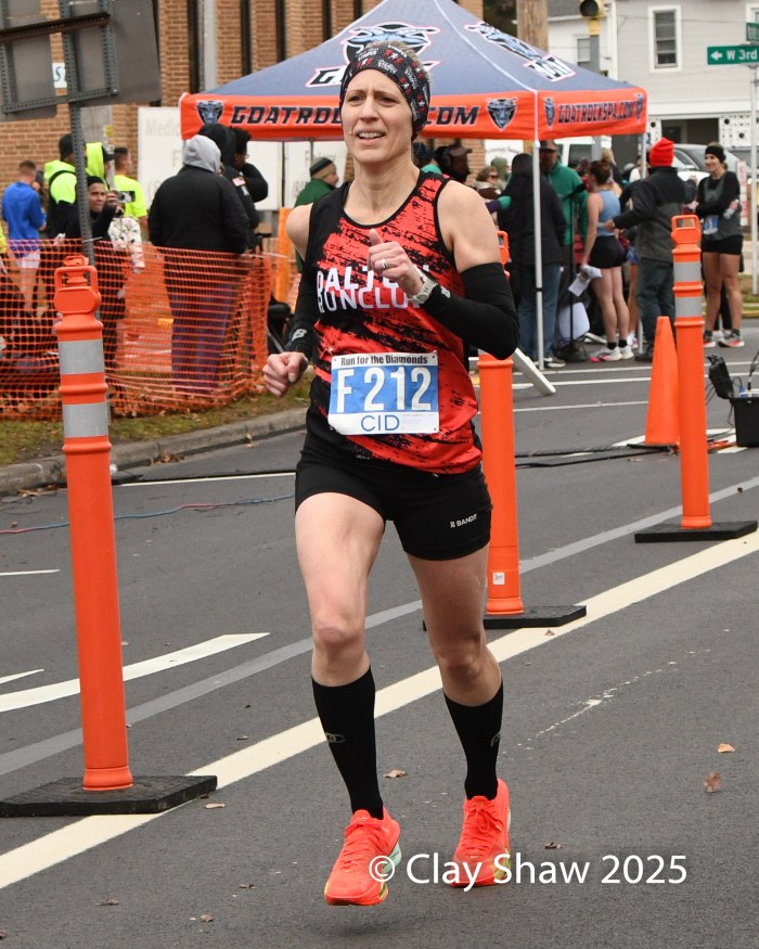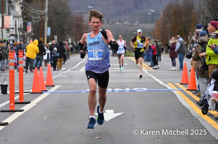 Carly Danoski of Dunmore, PA was the women’s champion in 56:33. Danoski was second in 2023 and seventh in 2024. She looked very pleased as she broke the tape this year. 3-time champion Marina Martino of Dallas, PA was second in 56:55. Whitney Heydenreich of Danville was third in 57:02. Corinne Fitzgerald of New York City was fourth in 58:11. Katie Sick of Millville, PA was fifth in 58:27. Jessica Crowley of New York City was sixth in 58:42. Katie Kozich, 17, of Mountain Top, PA was seventh in 58:50.