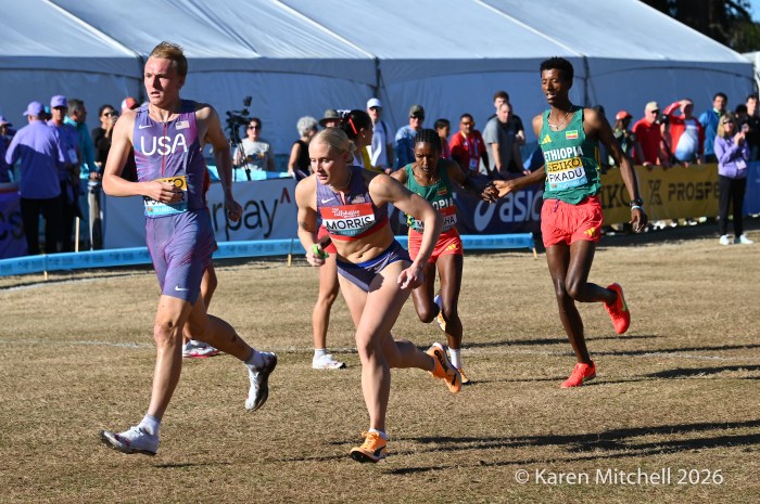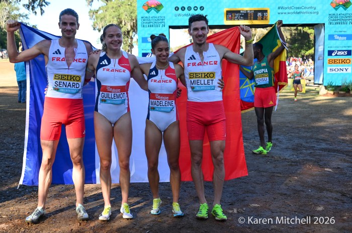1.10.26 Tallahassee, FL—Jessica Hull, running anchor on the Australian team, proved to be the difference maker as she took over the lead from France after “the roller-coaster” and increased her lead, running with a purpose. Australia earned bronze in the mixed relay on home soil in Bathurst in 2023.