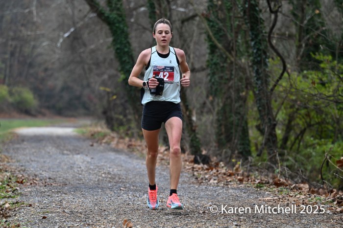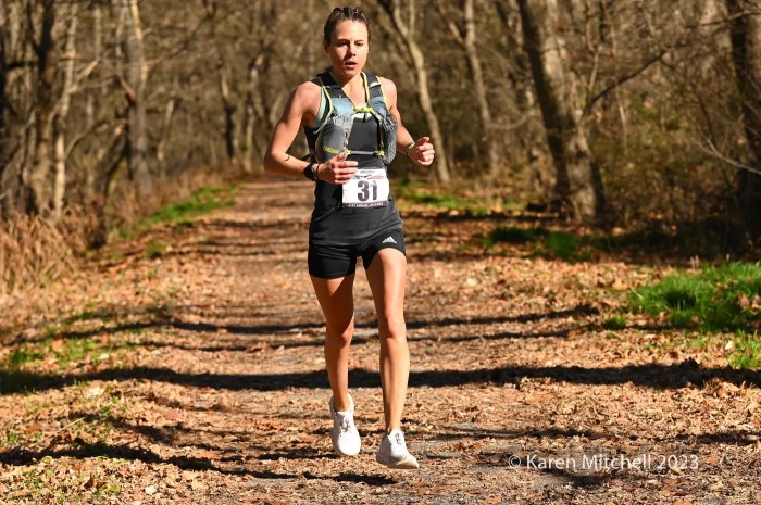 “Fast forward to 2025 (6:21:45, 4th place), I wanted to return to JFK with bigger aspirations after testing the waters in several 50K races. Over the summer and fall training, my goal was to run around the six-and-a-half-hour mark. After the remarkable races in 2024, I wasn’t sure exactly what place that time would allow for, but I knew I could run a significant PR. The road and C&O Canal segments are most certainly my strong suit. The Appalachian Trail would test my legs, as there aren’t many true trails in the Philadelphia area to train on. I had settled in around the fourth through sixth female position heading into the trail and had a couple of guys to lean on throughout at least half of the segment. Coming down the switchback at the Weverton checkpoint, I was fourth female and maintained that for the rest of the race.
